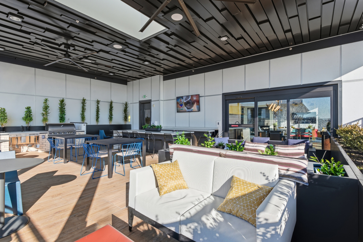 Outdoor Roof Deck with BBQ Grills, Televisions, and Seating